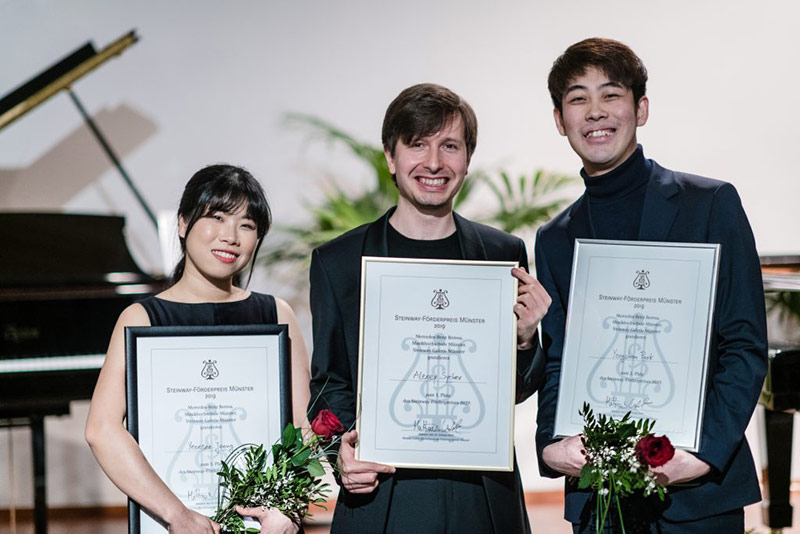 Am 10.02.2019 wurden die Preisträger des Steinway Förderpreises 2019 in Münster ermittelt. 1. Preis erhielt mit € 1.000,— Alexey Sychev, 2. Preisträger mit € 500,— ist Yongchan Park und 3. Preisträger mit € 250,— ist Yeonseo Jeong. Gratulation an alle Teilnehmer !!!